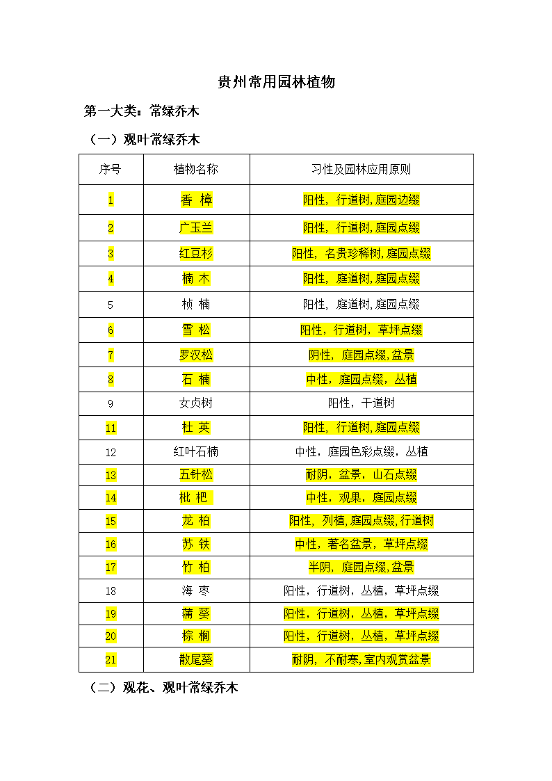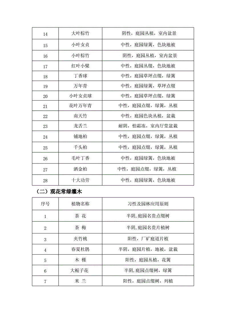 一、常绿乔木 松柏类:龙柏、白杆、雪松、白皮松、油松、华山松 阔叶类:大叶女贞、...