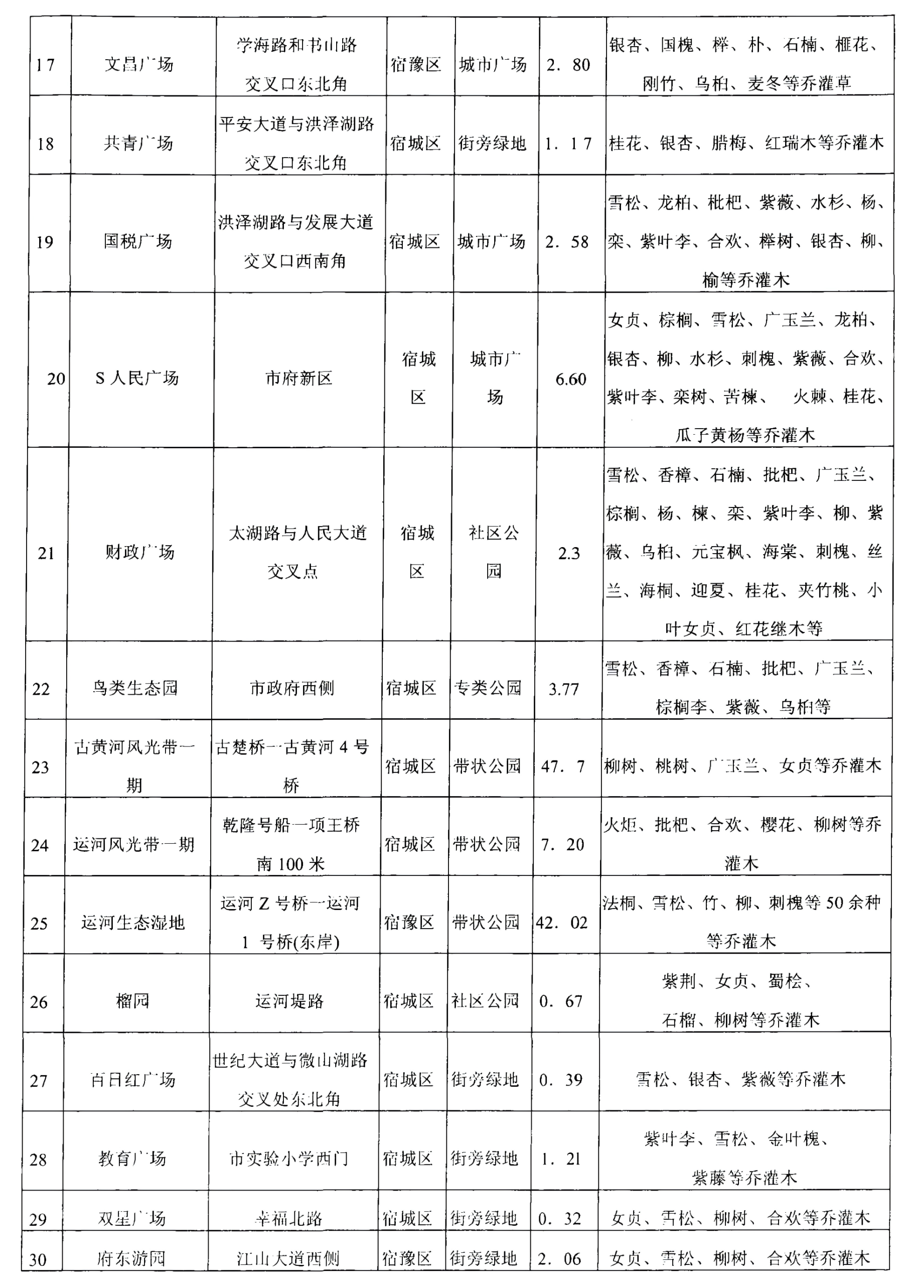 宿迁市城市园林植物概况